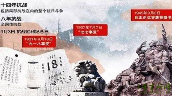 4、抗日時間1931年7月7日-1945年9月2日:期間經歷了14年,日本人以東北為切入口,一直打到華北,最后整個中國全都淪陷,但在這中間,一直都有中國人在反抗。