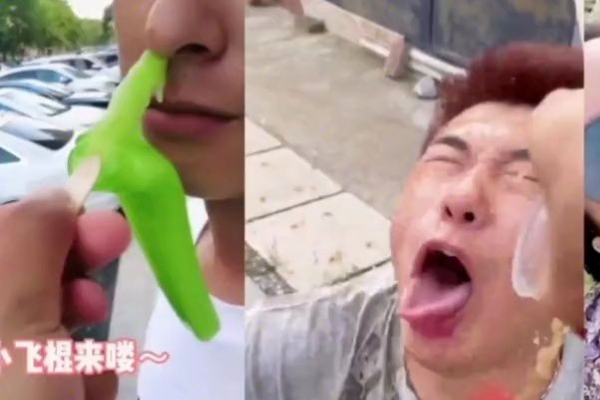 在一些博主拍攝的搞笑視頻中,在給男的投喂食物的時候,男的本來表示拒絕,但配上男版夾子音“小飛棍來嘍”,被投喂的一方就會迫不及待的吃下去。慢慢的,當聽到小飛棍來嘍,他們就會形成生理反應,主動張口等待食物。