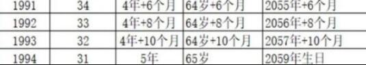 2、女性延遲退休年齡一覽表