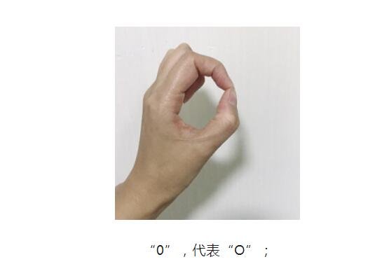 2、數字“0”,大拇指和食指指尖相對,其余手指收回,然后把手豎著放,這就是字母“O”;