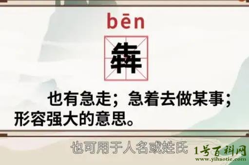 三個(gè)牛字堆積而成的字犇讀作bēn,本意是指牛受到驚嚇奔走的意思。大家可以看這個(gè)字,是不是像三個(gè)牛朝你飛奔而來,可以感受到牛的驚嚇程度吧,這是個(gè)會(huì)意字。現(xiàn)在也寫作“奔”,引申義為奔跑。