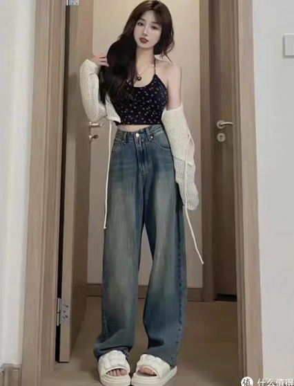 春季穿搭高腰拖地牛仔褲,港風潮范時尚。