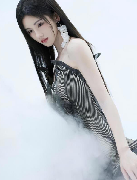 楊超越終于改變少女風(fēng)格了,條紋西服一身黑讓人驚艷