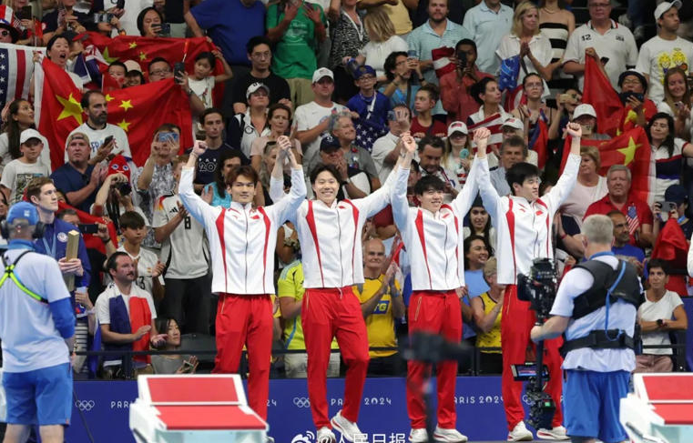 當(dāng)?shù)貢r間4日在巴黎奧運(yùn)會 游泳男子4×100米混合泳接力決賽 徐嘉余、覃海洋、孫佳俊、潘展樂 組成的中國隊奪得金牌...