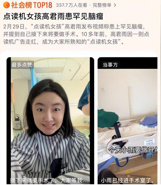 “點(diǎn)讀機(jī)女孩”高君雨患腦瘤,目前已進(jìn)手術(shù)室,畫面曝光臉色發(fā)白