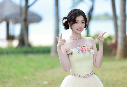 在時尚的繽紛世界里,虞書欣又一次以令人驚艷的造型抓住了眾人的目光。一襲淺黃色抹胸花朵裙,宛如從夢幻花園中翩然而至的精靈,美得動...