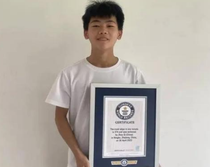 浙江余姚的16歲少年周琦在2023年用他非凡的速度和技巧刷新了吉尼斯世界紀(jì)錄,以每秒6次以上的速度跳動(dòng),一分鐘內(nèi)完成了374次跳繩,這一...