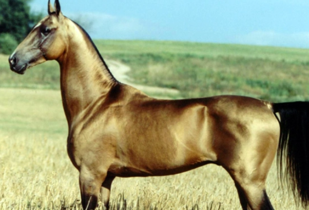 汗血寶馬被叫做阿哈爾捷金馬,主要產自土庫曼斯坦,也被該國奉為國寶,其形象被繪制在國徽和貨幣上。汗血寶馬體高在150?163厘米之間,毛色有淡金、棗紅、銀白及黑色等顏色,四肢修長,體態勻稱,奔跑時速度極快,且因為在奔跑的時候頸部會流出紅色的汗,看上去就像是流血一樣,所以被稱為汗血寶馬。