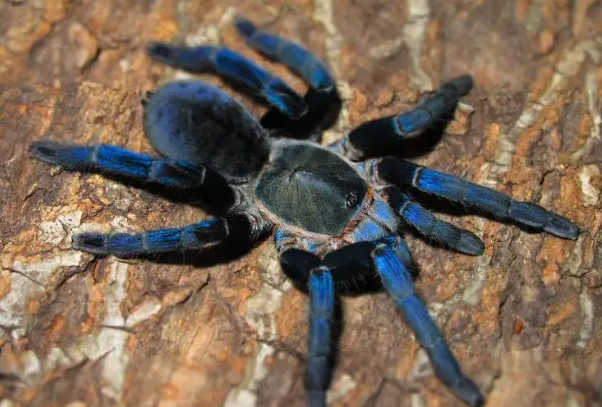 金屬藍蜘蛛又被叫做泰國鈷藍捕鳥蜘蛛,是一種經典的寵物捕鳥蛛種,它們的身體在強光下呈現出鈷藍色,不過這種金屬藍蜘蛛性情敏感且兇猛,毒性也很大,傷到人的幾率極大。