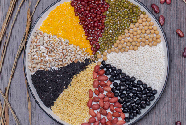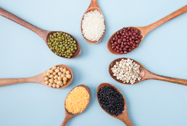 豆類有健脾養血、除濕利水等功效,常見的豆類中有黃豆、綠豆、黑豆等,它們的營養價值也都各有不同。黃豆中富含鈣、磷、植物性蛋白質、大豆卵磷脂、鐵、胡蘿卜素、蛋白酶抑制素及植物膽固醇等,還富含脂肪酸和亞麻油酸;綠豆中則含有蛋白質、維生素B1、維生素B2、胡蘿卜素、脂肪、碳水化合物、磷脂、葉酸等成分,可促進食欲;黑豆中出來蛋白質和膳食纖維等成分之外,含有異黃酮和不飽和脂肪酸,有降低血液粘稠度的作用。