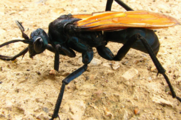 沙漠蛛蜂是蛛蜂科蛛蜂族Hemipepsis屬動(dòng)物,又被叫做狼蛛鷹、蜘蛛鷹胡蜂,分布于南亞、東南亞、非洲、大洋洲和美洲,它身長50毫米,通體黑色,翅膀?yàn)槌燃t色,尾部有著巨大的毒針。沙漠蛛蜂為世界上最大的黃蜂,且含有毒性,通常情況下它們不會(huì)主動(dòng)哲人,但是如果被蜇的話,人們會(huì)感激奇痛無比,是所有會(huì)導(dǎo)致疼痛的蟲子里刺痛程度最高的一種,因此它也被認(rèn)為是長得最恐怖的蟲子第一名。