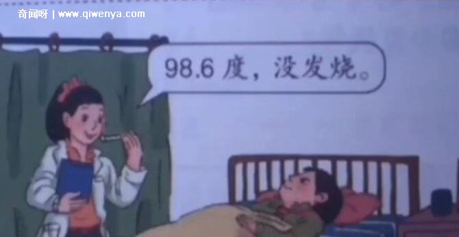 1、這張圖就是數學書最詭異的一頁,插畫中的醫生說這個患者發燒98.6度都沒事,還說他沒有發燒,這也太不可思議了。不少人都發燒看過醫生,一般體溫38度以上就已經算高燒了,體溫98.6度恐怕人都已經熟透了,因此許多人都認為這個醫生和患者都是鬼。